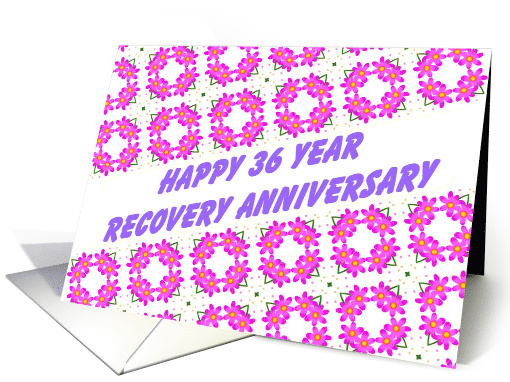 | Artist Notes: | A simple attractive card featuring a 36 Year Happy Recovery Anniversary wish, on a field of pink flowers. You can change the words inside the card. |