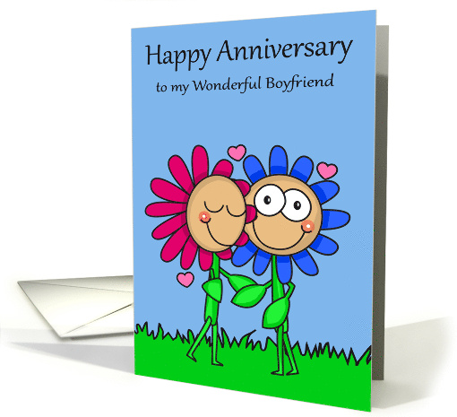 | Title: | Anniversary to Boyfriend with a Loving Flower Couple Embracing |