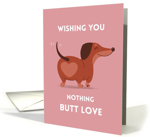 | Artist Notes: | For the person you love a whole bunch... from head to tail! This funny and charming card features a cute dachshund showing off a heart and a wagging tail, with the cheeky pun 'Wishing You Nothing Butt Love.' It's a hilarious and sweet way to share a smile with your significant other. |