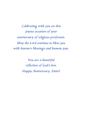 Celebrate with a Catholic nun on her first anniversary of her religious profession. Mary, our blessed mother, is seen in light blue, kneeling on a bed of roses.