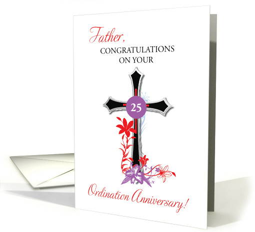 | Title: | Priest 25th Ordination Anniversary Black Cross with Red Swirls |