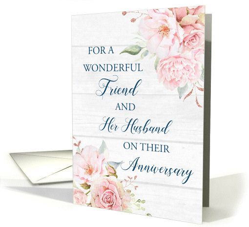 | Title: | Blush Pink Flowers Friend and her Husband Anniversary Card |