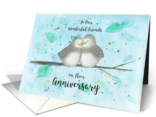 | Title: | Happy Anniversary to Our Wonderful Friends, Cute Cartoon Lovebirds |