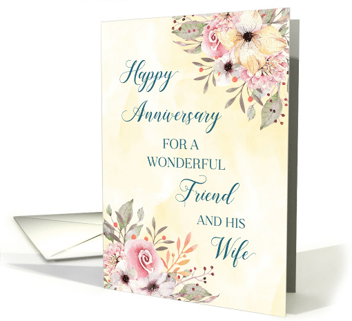 | Title: | Spring Watercolor Floral Friend and his Wife Happy Anniversary |
