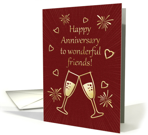| Title: | Wedding Anniversary for Friends with Toasting Glasses and Hearts |