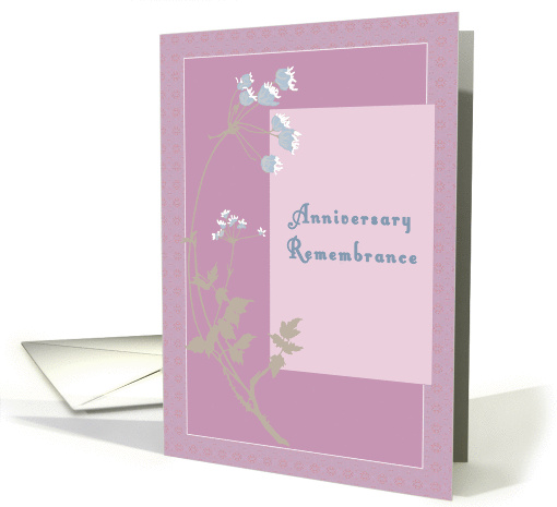 | Artist Notes: | Anniversary of a death remembrance for Mum. This is a conservative, yet beautiful design with a stem of light blue flowers on a lavender and pink background with a small print border in a lighter lavender. You can change the Mum on the inside to Mom if you prefer. Thanks to Bsilvia for some of the elements in the design. |