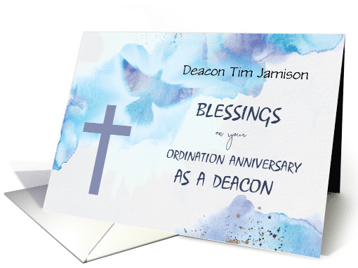 | Title: | Custom Name Deacon Ordination Anniversary Blessings Purple Cross Blue |
