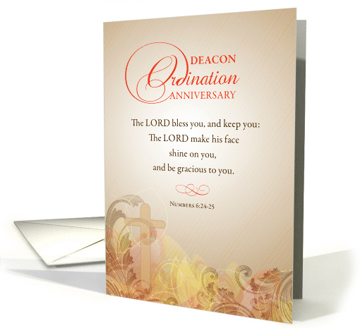 | Artist Notes: | An anniversary of Ordination to the Diaconate is a joyful celebration for a Deacon. Send this beautiful card with the scripture “The Lord Bless and Keep you” to a Deacon celebrating his anniversary. |