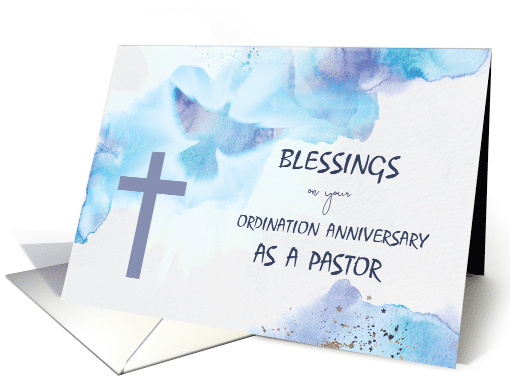 | Title: | Pastor Ordination Anniversary Blessings Purple Cross Blue Watercolor |
