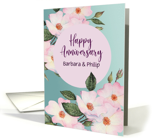 Customize Any Name Happy Anniversary Watercolor Pink Roses Botanical