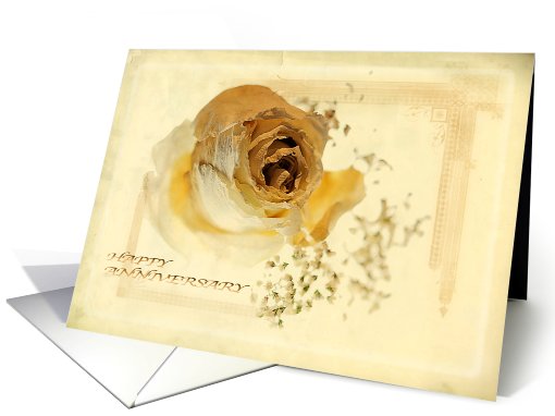 When you want your anniversary wishes to have special meaning, send your note of congratulations on this unique and lovely antique dried white rose card.