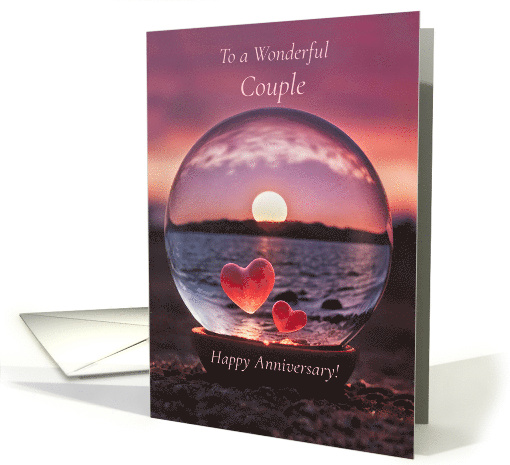 Couple Happy Anniversary Pretty Beach Sunset and Hearts
