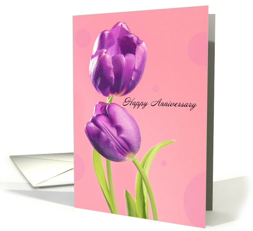 Happy Anniversary Beautiful Purple Tulips on Pink Photograph