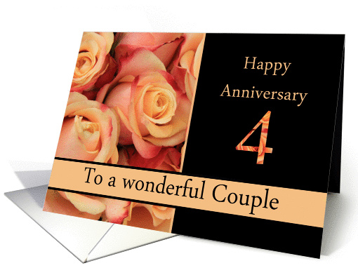 4th Anniversary Card to a special couple. Surprise them on their special day with this multicolored pink roses anniversary card. This anniversary card is available for many different (family) relations in some non-english languages and for many different anniversary years. Search for "Studio Porto Sabbia" and "multicolored pink roses anniversary" to find more available versions of this card.