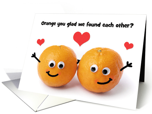 | Artist Notes: | Have a little pun when you wish your spouse a Happy Anniversary with this cute orange couple making silly jokes while little hearts float around them. |