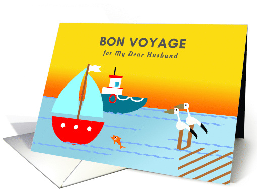 Bon Voyage to My Dear Husband. Good trip, paper greeting card to let your husband know you will miss him as he sets off into the sunset.