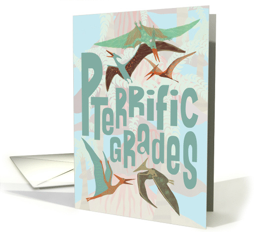 | Artist Notes: | Fun congratulations card featuring beautifully illustrated pterodactyls and a dinosaur pun. Send this humorous card to say congrats for a great report card. |