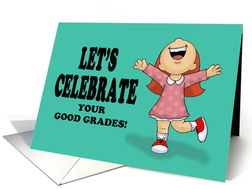 | Artist Notes: | Congratulations on getting good grades card. The front shows a cute cartoon girl showing excitement. The words say, Let's celebrate your good grades! Inside says, Totally Awesome! |