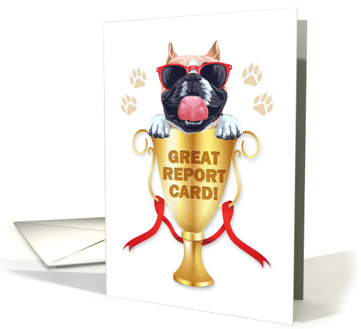 | Title: | Great Report Card Congratulations Cute Bulldog in a Trophy |