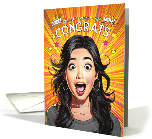 | Artist Notes: | Vivid starburst background in superhero style creates the backdrop for this lovely teenage girl to create a fun card to congratulate a great report card. |