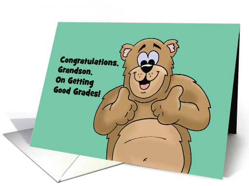 | Artist Notes: | Congratulations card for a grandson getting good grades, with a cartoon bear giving thumbs up. The words say, Congratulations, Grandson, on getting good grades! Inside says, I am very proud of you! |