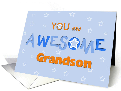 | Artist Notes: | Celebrate your grandson's good grades with this card expressing that he is AWESOME with a blue background and stars and orange and blue words. Inside verse on all cards can be edited by you. |