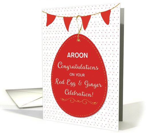 | Artist Notes: | A large red egg is hanging from a string of red flags with a sweet polka dot background. Customize the card with the baby’s name for a great keepsake. Golden trim around the egg and a golden decorative element tie it together. Congratulate a baby on their red egg and ginger celebration. Perfect for either a baby boy or girl! |