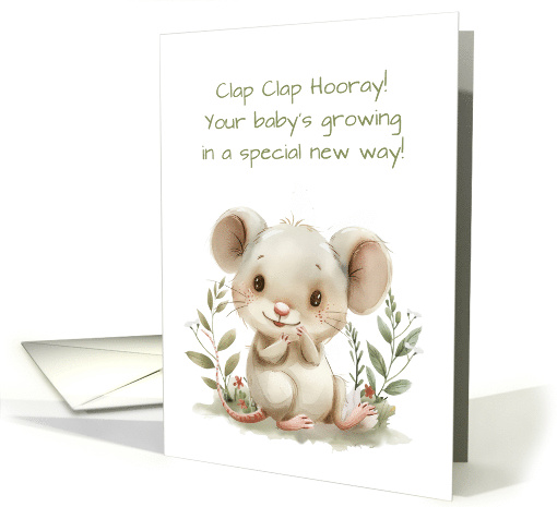 | Artist Notes: | Celebrate your little one’s exciting new milestone with this joyful design featuring a baby’s first claps! The playful artwork showcases a happy, cute clapping mouse surrounded by soft greeneryThe front reads, "Clap, Clap, Hooray! Your Baby’s Growing in a Special New Way!" making it a perfect way to commemorate this adorable moment. This card is a sweet keepsake to celebrate one of baby’s first big steps in their wonderful journey. |