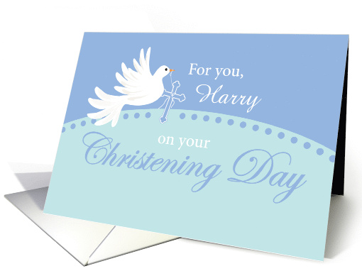| Title: | Custom Name Harry Christening Dove on Blue |