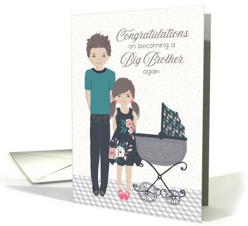 | Artist Notes: | You're a big brother again! You are big enough to help out Mom and Dad taking care of the little one. Card has an illustration of a big brother with a little sister and a stroller beside them. |