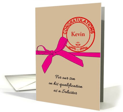 | Title: | Son Qualified as Solicitor Pink Ribbon and Custom Name Stamp |