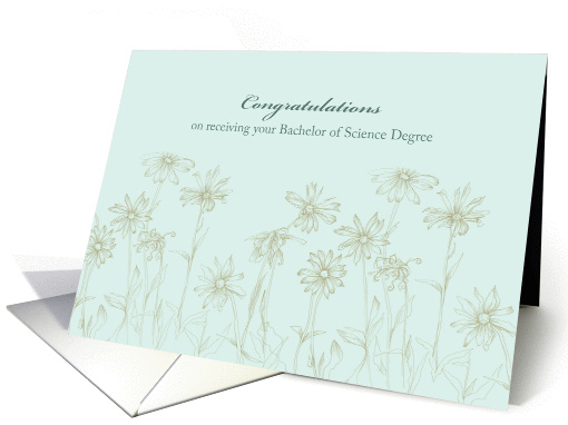 | Artist Notes: | For college graduation a Congratulations on receiving your Bachelor of Science Degree greeting card decorated with sepia daisy flowers drawn in pen and ink on a soft aqua green background. |