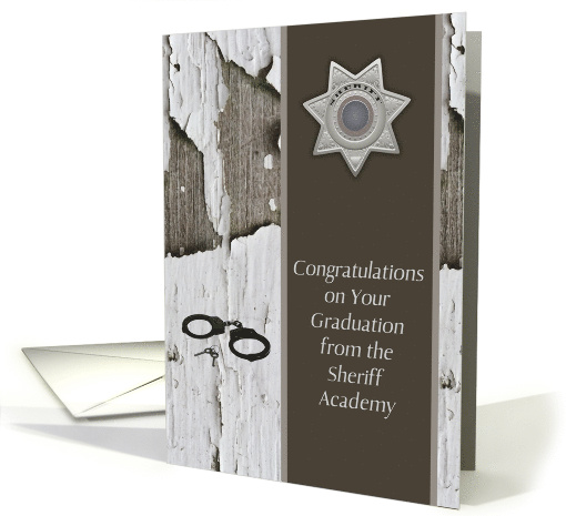 | Artist Notes: | Congratulations on graduation from the Sheriff's Academy. The design has a weathered wood background, a badge, and handcuffs. Thanks to Design Cuts and Pixabay for some of the elements in the design. |