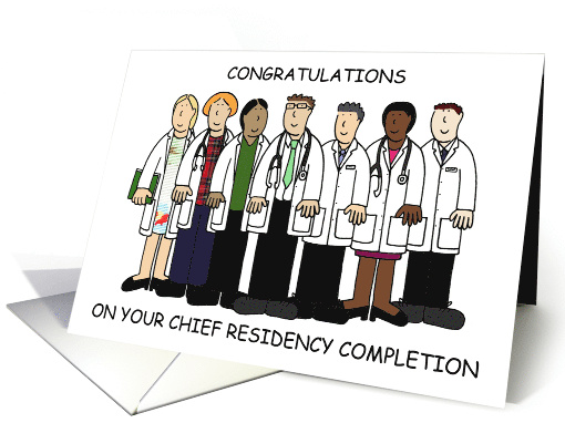 | Artist Notes: | A cartoon of a group of male and female doctors wearing white coats. The image is accompanied by the text 'Congratulations on your chief residency completion'. |
