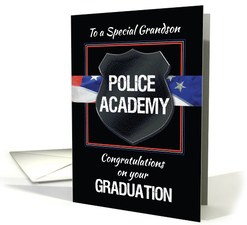 | Title: | Grandson Police Academy Graduation Congratulations Black with Flag |