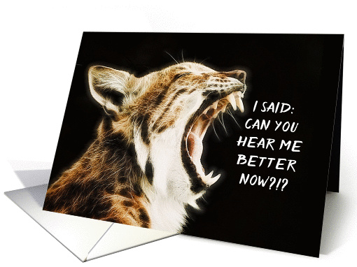 | Artist Notes: | Congratulate your friend or family member on graduating as an Audiologist with this card featuring a cat with wide open mouth yelling: I said: Can you hear me better now?!? |