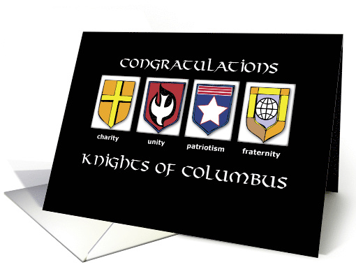 | Artist Notes: | This black card is what you need to send someone who has been inducted into the Knights of Columbus. Shields appear on the cover and an inside message that congratulates them for this honor. |
