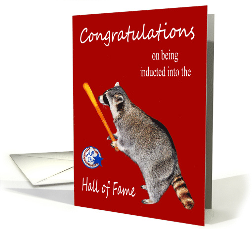 Congratulate someone on their induction into the hall of fame for baseball with an adorable raccoon holding a baseball bat on a pretty red background with an all star baseball and white text. Fun facts: For almost 150 years, high-level professional baseball has been part and parcel of the American cultural landscape, chronicled in exacting detail by contemporary journalists and record-keepers. In terms of stories, numbers, and folklore, there’s more information out there about baseball than any two other American sports put together.