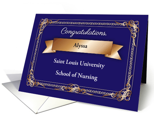 | Artist Notes: | Give this customizable congratulations card to someone who was inducted with an elite academic honor, such as the Alpha Sigma Nu. The cover features a dark blue background, gold border, gold banner, and a white headline that says 'Congratulations.' There is room for that personal name on the banner and underneath room for the name of the college/university and the school of discipline. The inside message may be changed, if you wish. ©Gail Pepin |