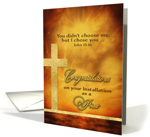 | Artist Notes: | Golden brown tones and tints, a faux-gold cross and text- perfect to wish a newly installed Priest God's blessings. You can customize message inside. |