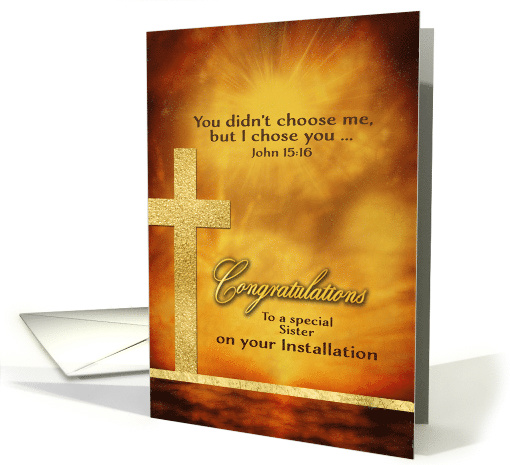 | Artist Notes: | Wish your sister all the best on her Ordination with this lovely card featuring a golden cross (digitally created) and a glowing, light-filled background. You can change all text inside the card. |