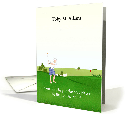 Young Man Winning Golf Tournament Driving Ball to Flag Custom Name