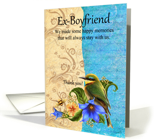 | Artist Notes: | A delicate retro card, for ex-boyfriend with nice words and pretty bird at the bottom edge, grunge and faint text and flowers are in the background, a heartfelt thank you card. with thanks to moonbeam1212 |