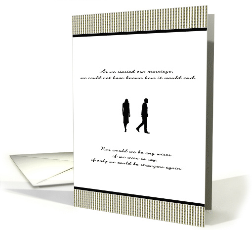 | Artist Notes: | Black and white profile of a soon-to-be divorced couple, walking away from each other. The sentiment here is 'if only we could be strangers again'. |