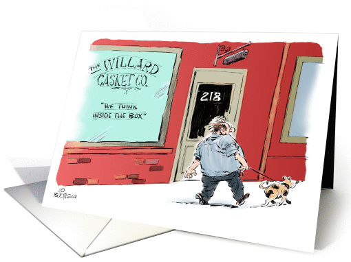 | Artist Notes: | The inside verse expresses simple support to a friend that has broken off a relationship in some manner. The cartoon shows a person walking past a business that might supply equipment needed for that breakup. |