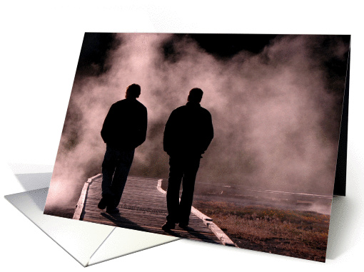 | Artist Notes: | Photo is a silhouette of two men waling away down the boardwalk towards a steam-pot from Yellowstone National Forest. |