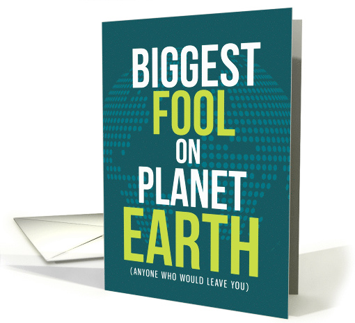 | Artist Notes: | Encourage someone going through a breakup with this bold typographic design featuring the message in bold green and white letters, "Biggest Fool on Planet Earth (anyone who would leave you)." Inside can be customized with your own message. |