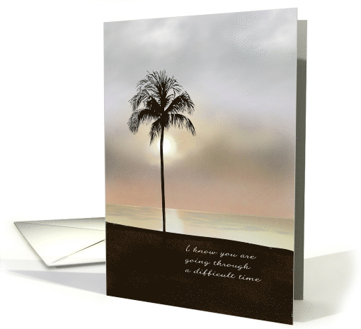 | Artist Notes: | A lone coconut tree stands on a beach, framed against the evening sky. The sun is sitting low, throwing a bright streak of light on the surface of the sea. Sending words of support to someone who is recently divorced. |