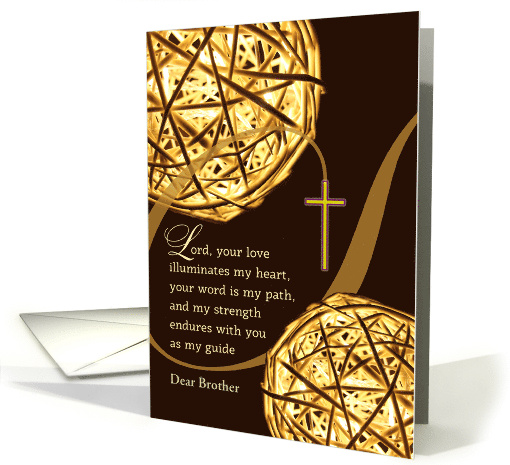 Encouragement greeting card for a brother in need of light and hope. Illuminated spheres of light, a cross, and inspirational verse. Light spheres courtesy of Pixabay.