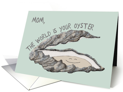 | Artist Notes: | Fun encouragement card for your mom. This sweet oyster is smiling big because the world is his oyster and so it is for your mom, who needs a little encouragement. |